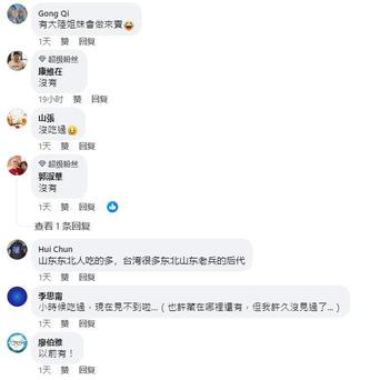 也有许多网友纷纷表示没有吃过凉皮,台湾网友游雅婷说道:“不多!没吃过。”来自台北市的网友康维在和来自高雄的网友郭淑华都表示赞同:“没有。”网友山张也表示:“没吃过。”热心网友Hui Chun解答道:“山东东北人吃的多,台湾很多东北山东老兵的后代。”